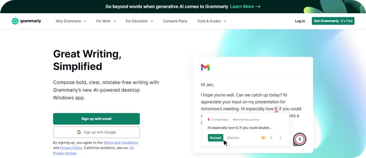You can access Grammarly through various platforms, including a browser extension, a desktop or mobile app, and even as an add-on for Microsoft Word and Google Docs. Strong points: