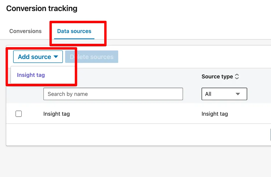 Then, select Data Sources, click Add source, and choose Insight tag. Create an Insight Tag.