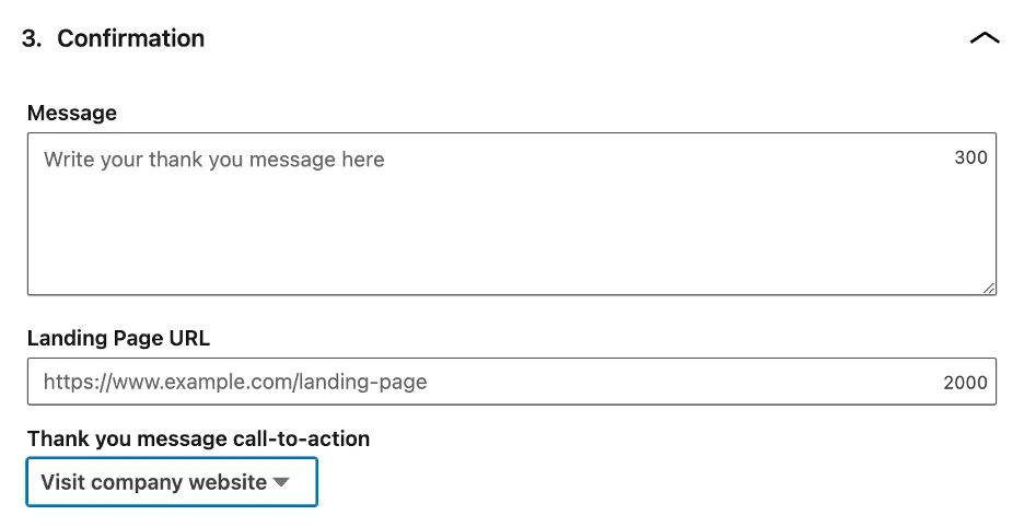 6.The final step is to set up Confirmation Message and Thank you page with a call-to-action.