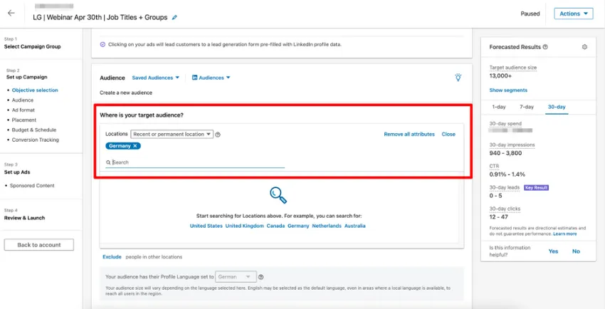 When it comes to B2B lead generation strategies, the first step is setting your objective. Lead Generation and Website conversion are the best suited for your LinkedIn campaign.