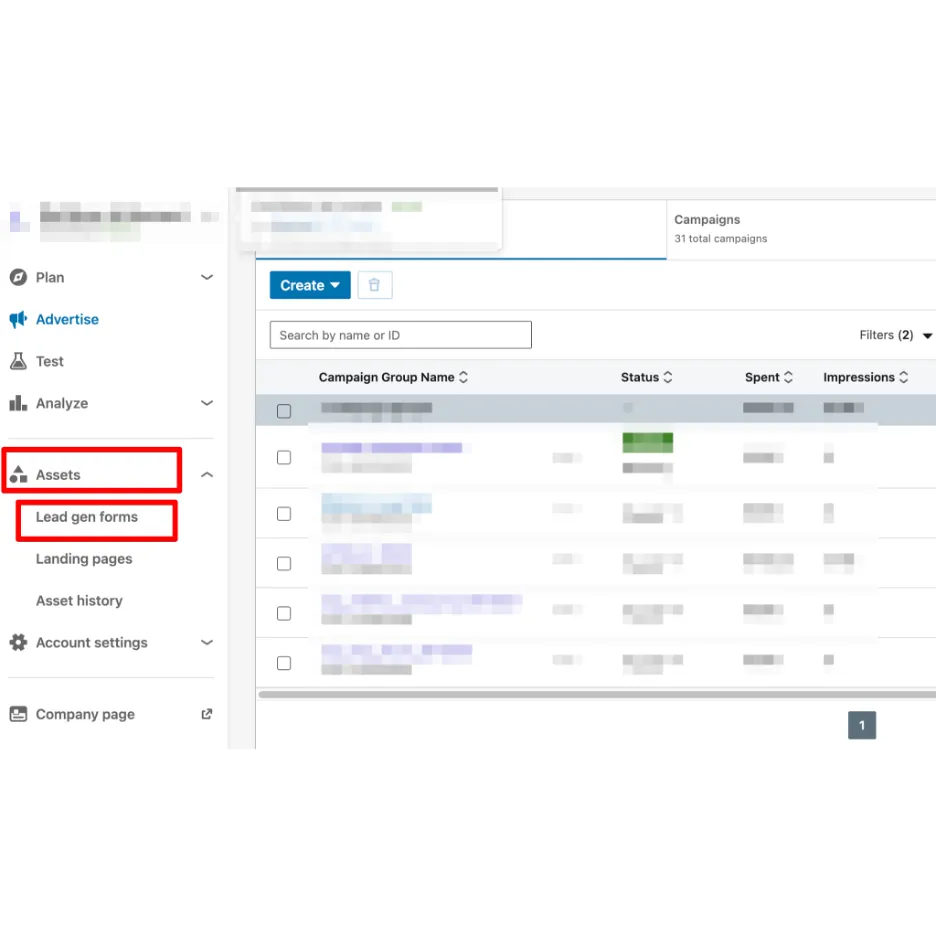 CTR and Lead Conversion Rate depend on how you set up lead forms. It is important to note that even the best creatives and ads content do not ensure that your audience will convert into leads after clicking your ad. Let's go through the steps of creating a high-converting lead form.To create a lead form, navigate to Assets and click Lead gen forms. Then, select Create form.