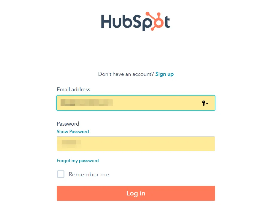 Откроется страница авторизации HubSpot. Войдите в свою учетную запись.