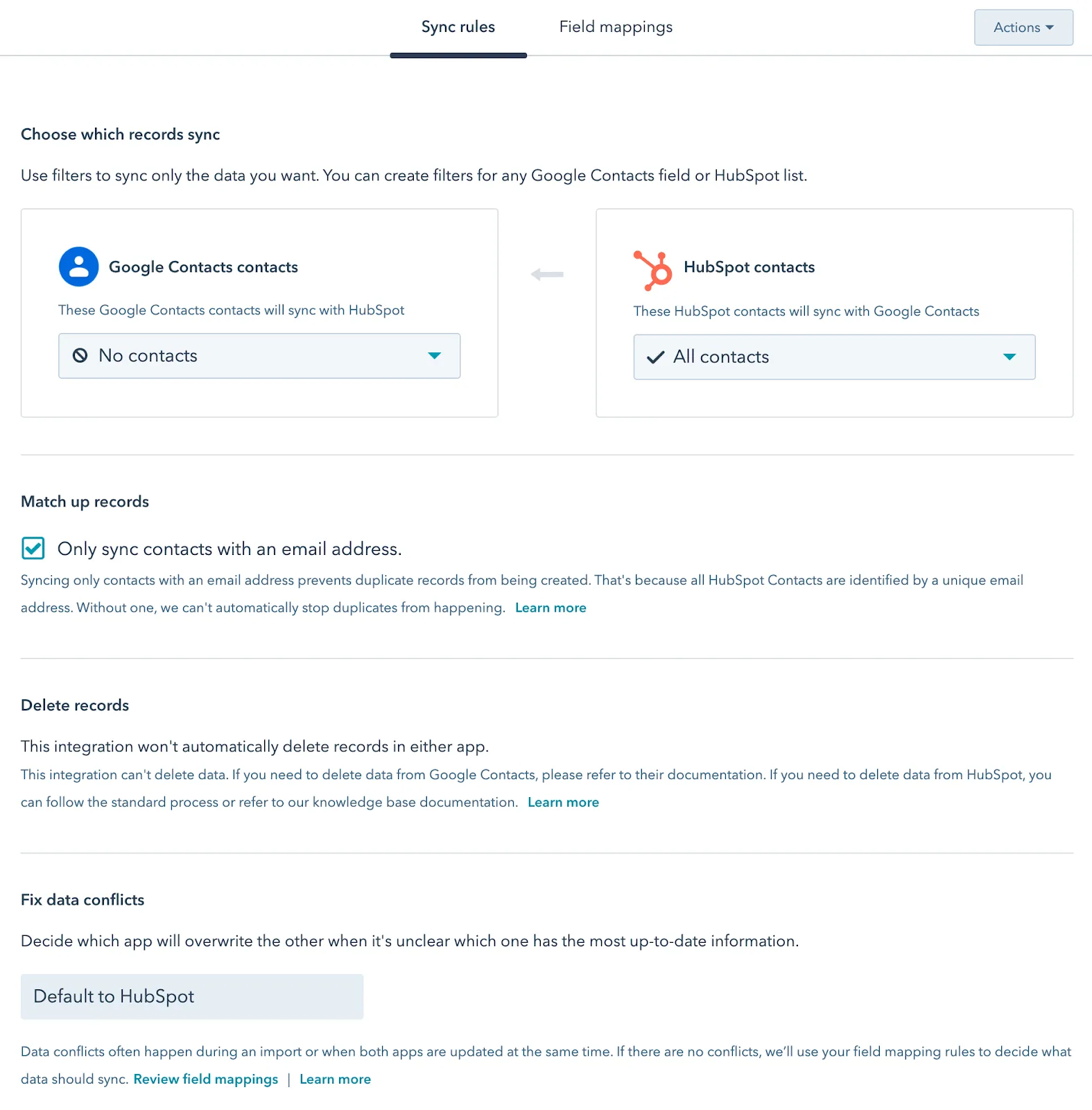 Обычные интеграции – односторонние. Например, вы можете синхронизировать контакты из CRM с почтовой платформой, но не можете выгружать из нее данные в HubSpot. Интеграция, дополненная синхронизацией данных, позволяет передавать информацию из любой системы в любом направлении.