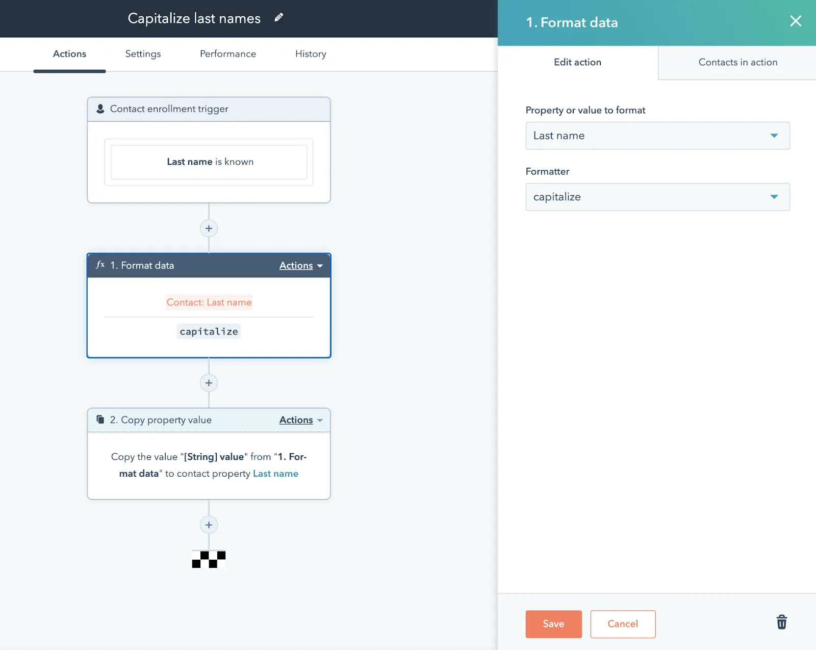 Новый набор действий в воркфлоу позволяет отформатировать данные не только в самом HubSpot, но и в других подключенных приложениях (если вы пользуетесь Data sync). Автоматизация качества данных доступна только в Operations Hub Professional.