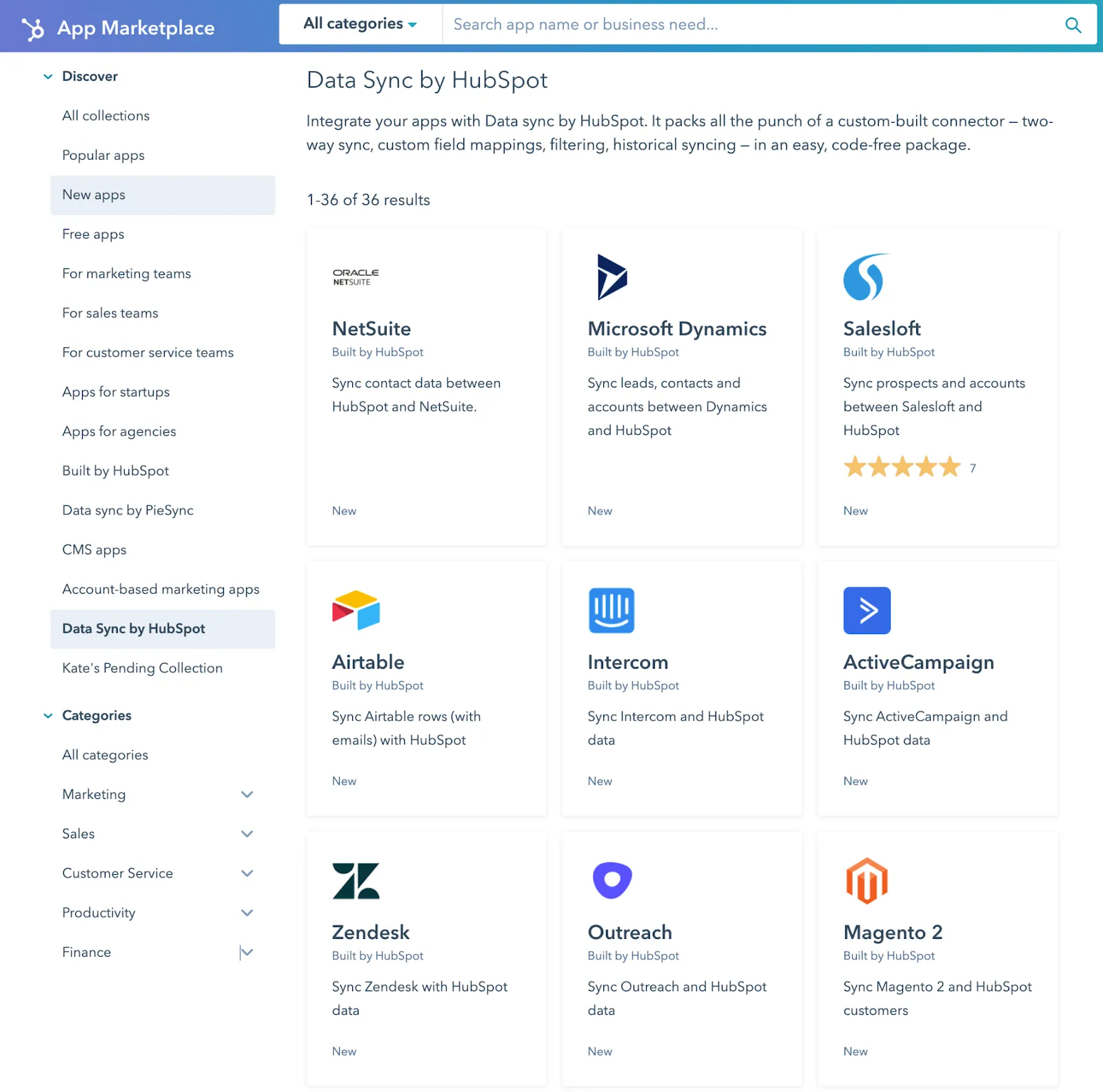 Operations Hub предлагает 25 новых интеграций. В список приложений попали популярные сервисы, вроде Google Contacts, Mailchimp, Microsoft Dynamics, Mindbody, Bullhorn и т.д. Причем даже, если HubSpot не используется в качестве CRM-системы, вы все равно сможете подключить к нему множество приложений – от ERP до почтовых рассылок, финансовых систем и т.д. Полный список доступных интеграций можно найти в HubSpot Marketplace.